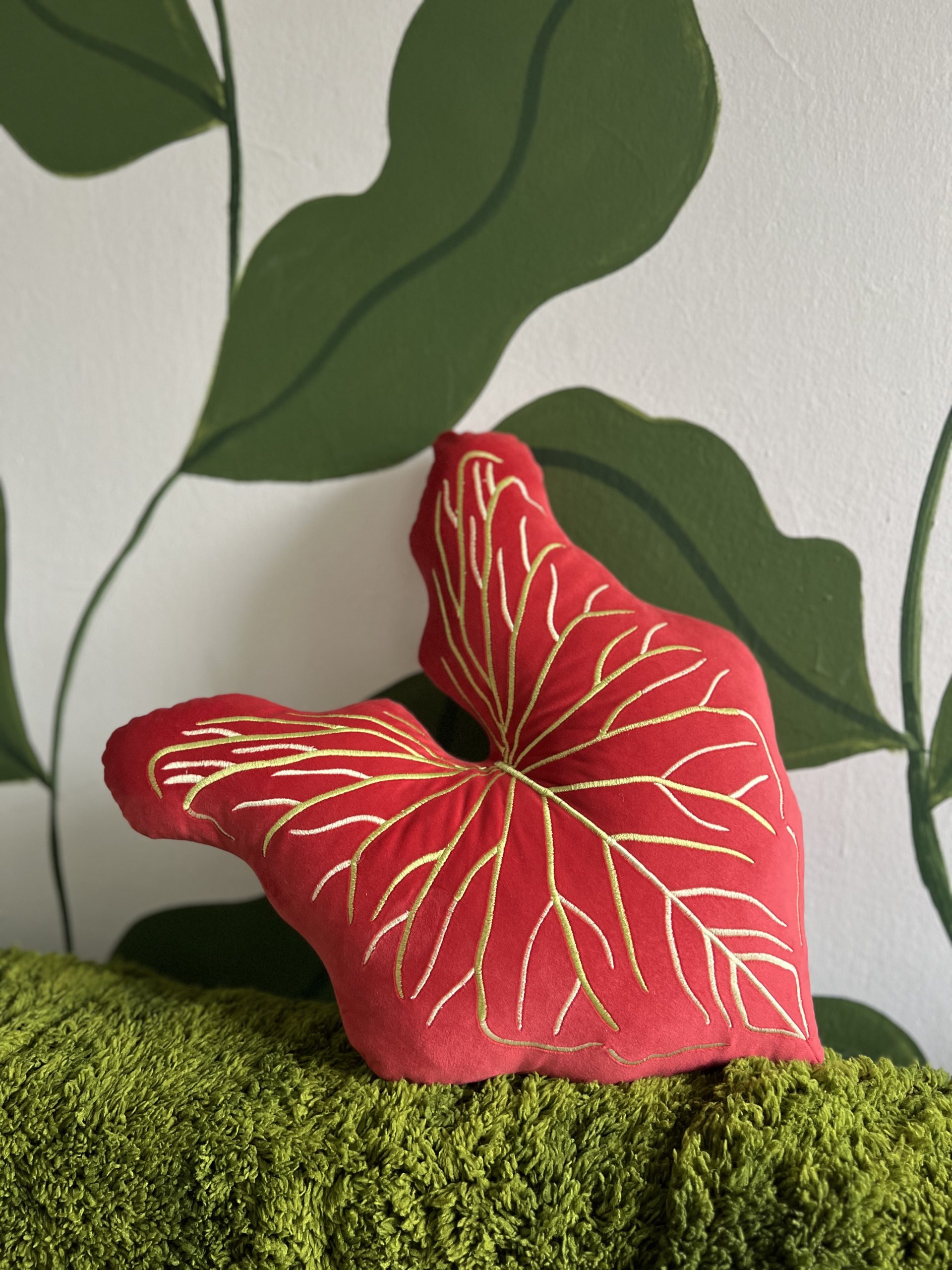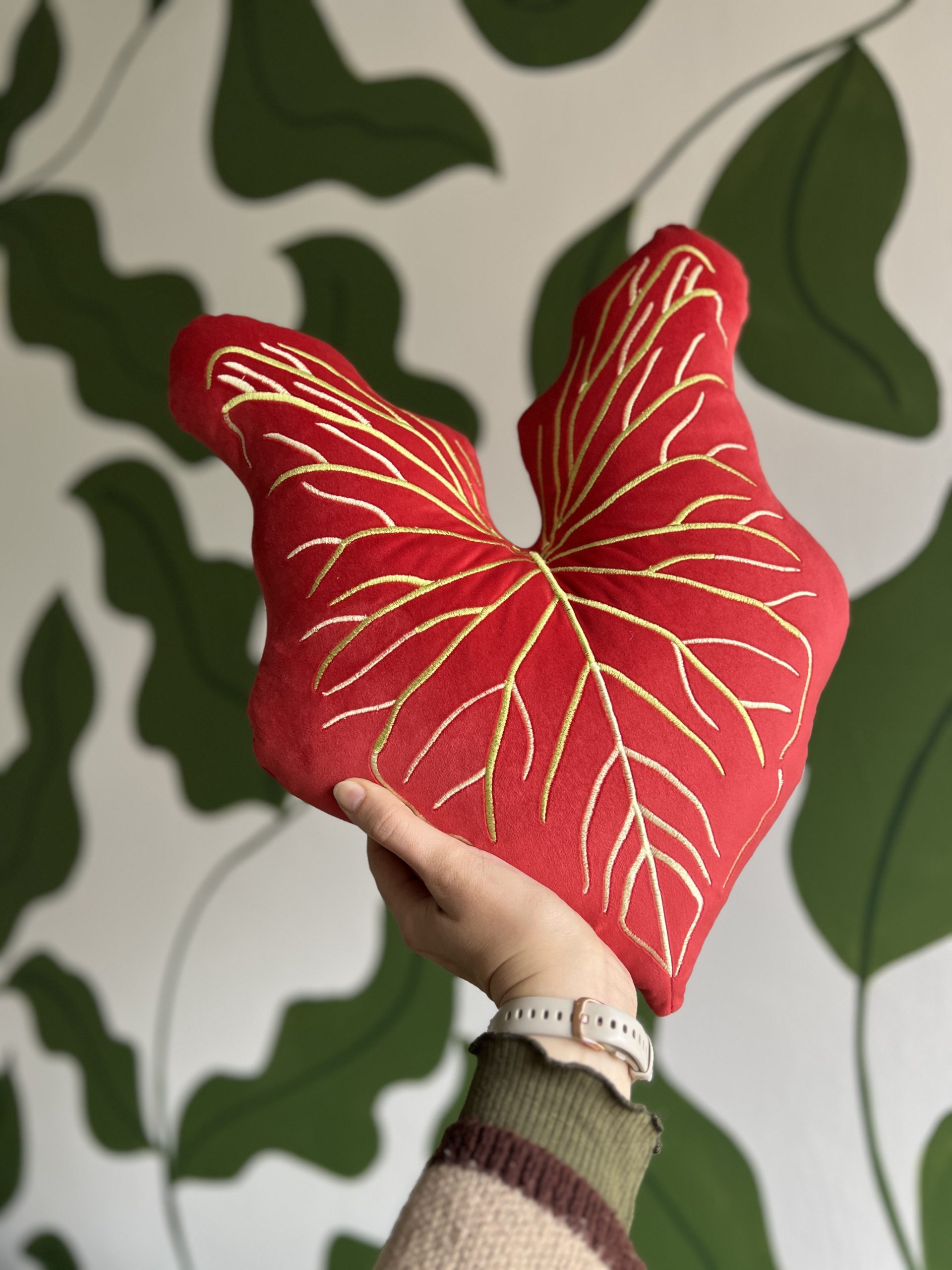 Dzięki swojemu unikalnemu designowi, poduszka w kształcie liścia Caladium Bloody Red świetnie sprawdzi się jako dekoracja w salonie, sypialni, czy na tarasie, wprowadzając tropikalny klimat i odrobinę natury do Twojego otoczenia. Jest nie tylko stylowym dodatkiem, ale także funkcjonalnym elementem, który zapewnia komfort podczas odpoczynku. Każda poduszka jest ręcznie wykonana z dbałością o detale, co sprawia, że każdy egzemplarz jest wyjątkowy. Idealna dla miłośników roślin i osób ceniących unikalne, ręcznie robione dodatki do wnętrz!